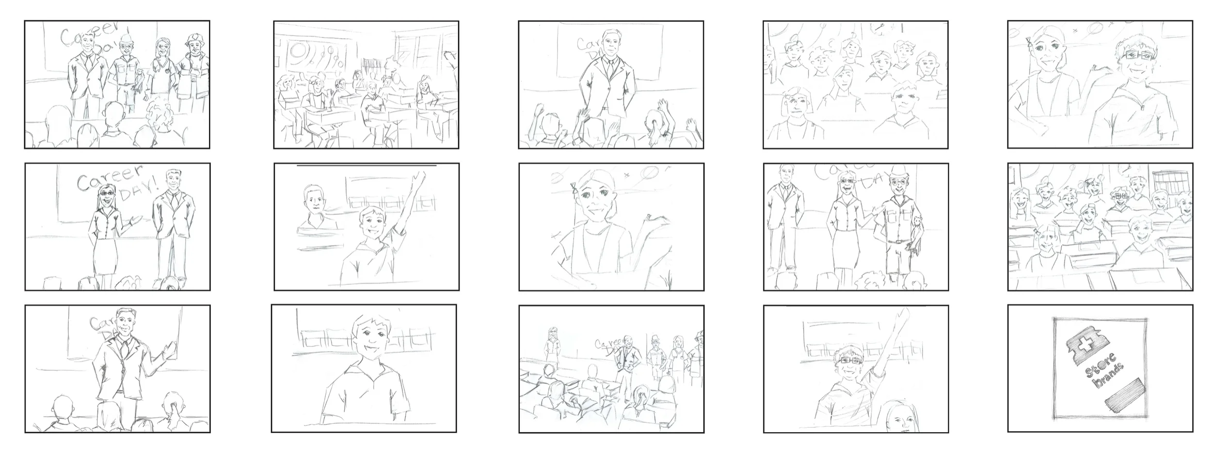 Working with the creative agency i had the chance to help with commercials. I would be given a script and tasked with illustrating the content and creating a storyboard. The storyboards were used to help communicate the creative direction with clients before filming or in pitch presentations and often used in the set up of camera shots during filming.